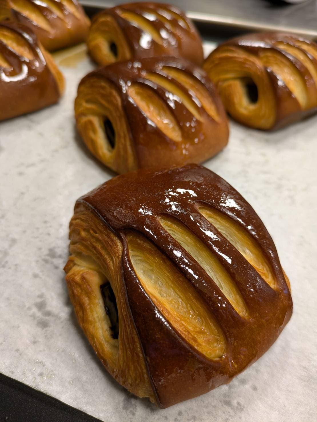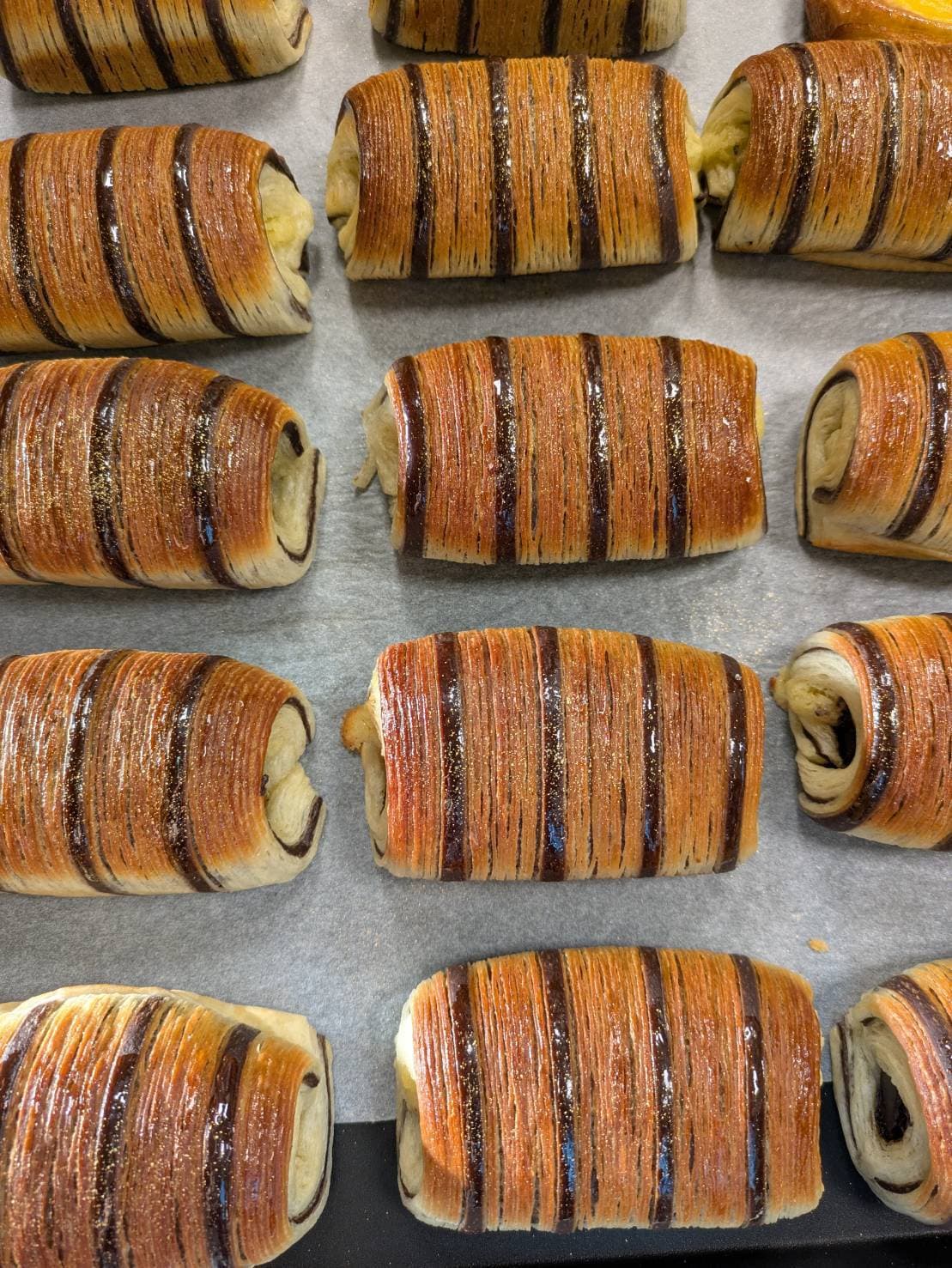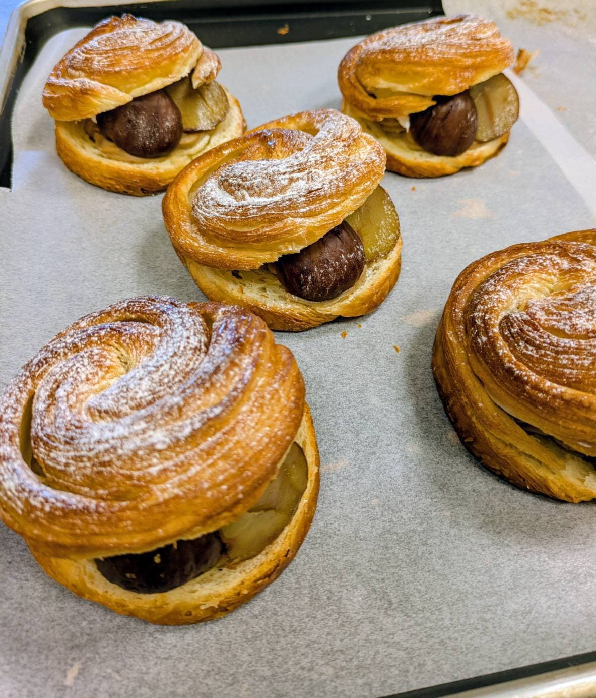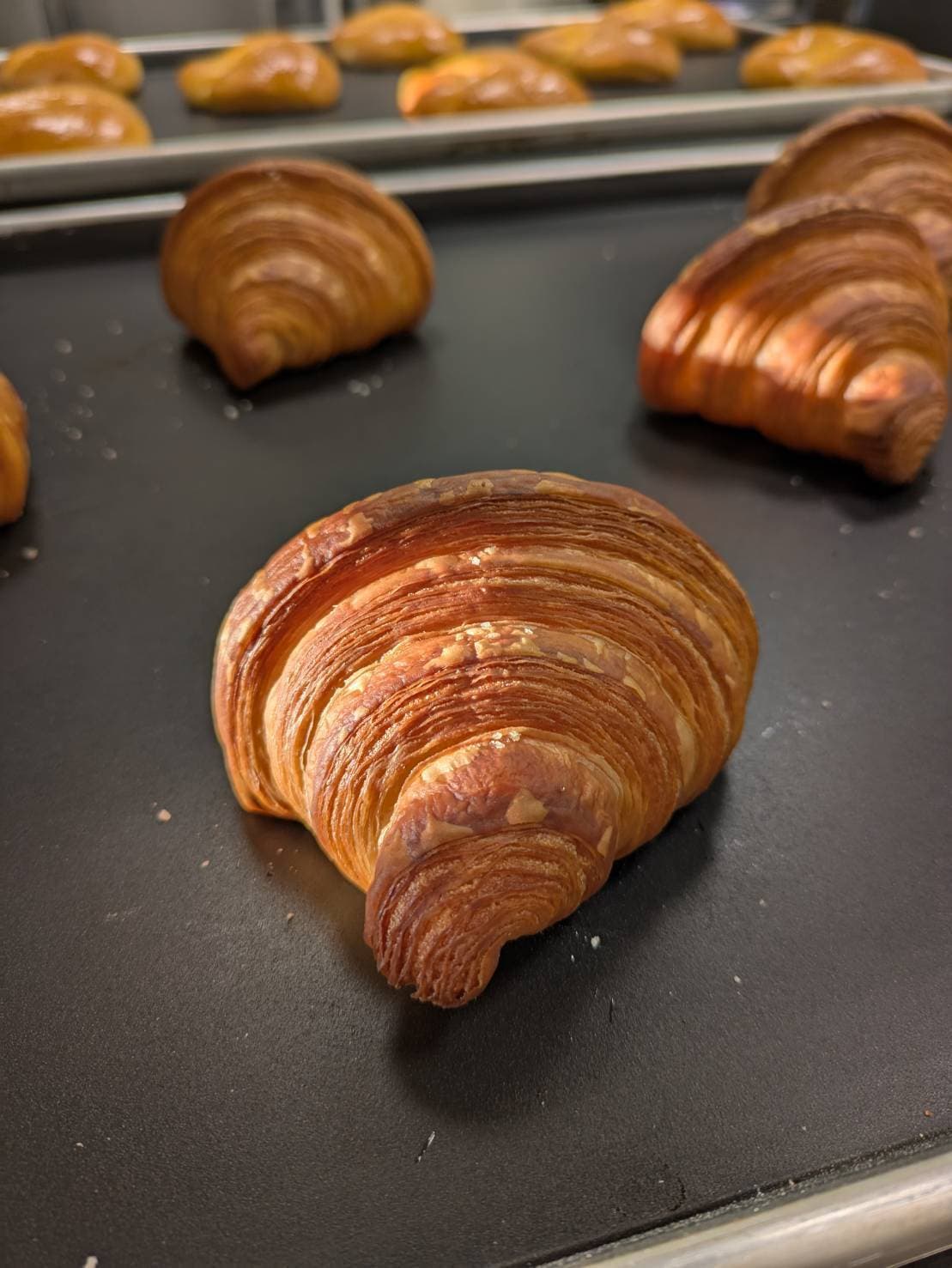 原料として、小麦、イースト、牛乳、卵、多量のバターを含むデンマーク由来のパンです。パン生地を薄く延ばし、バターを塗り込み何重にも重ね、巻き込むことを数回繰り返すことでサクサクする食感やバターの風味ができ上がります。